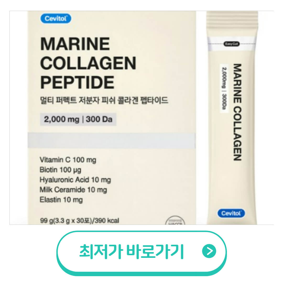 콜라겐을 생성하는 데 도움을 주는 '비오틴' 영양제나, 콜라겐 단백질 생성을 도와주는 히알루론산, 피부 항산화를 도와주는 비타민 C, E와 함께 섭취해 주면 피부 탄력도에 유의미한 효과를 얻을 수 있습니다. 저분자 콜라겐만 염두에 두지 마시고, 히알루론산과 비오틴, 비타민 C와 세라마이드 등까지 같이 함유되어 있는 가성비 있는 콜라겐 드셔보세요.